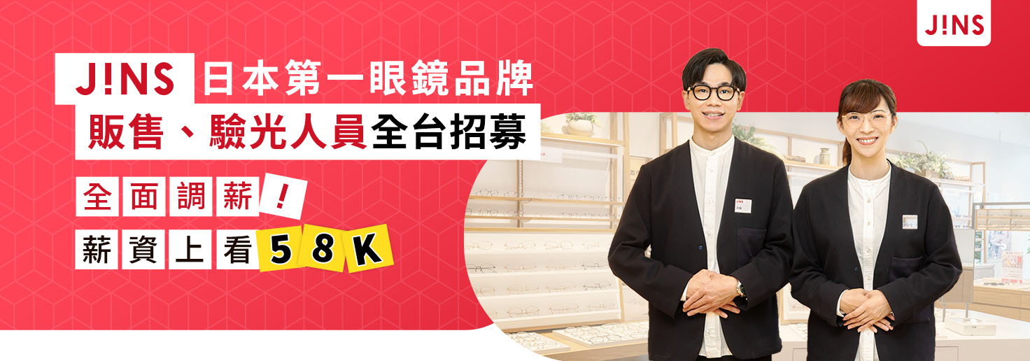 【贊助】JINS|日本第一眼鏡品牌,販售、驗光人員全台募集,薪資上看58K!